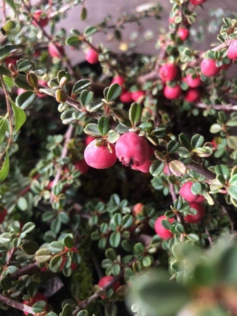 Bladhoudend struikje met kleine, glanzendgroene ronde blaadjes. Geeft kleine roze bloempjes in de lente, in de herfst gevolgd door rode bessen. Goede bodembedekker (hoogte:30 tot 50 cm) voor een zonnige plaats. Verdraagt goed snoei.