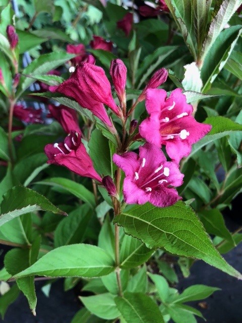 Kleinblijvend boompje met langwerpige frisgroene bladeren; bladverliezend in de winter. Bloeit in mei en juni met donkerrode klokvormige bloemen, met soms een nabloei in de vroege herfst. Omdat deze sooert op eenjarig hout bloeit, en om een mooie compacte vorm te behouden is het noodzakelijk de plant jaarlijks in de lente tamelijk kort terug te snoeien.