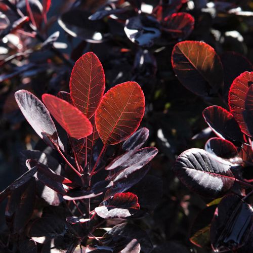 Opvallende bladverliezende struik met purperrood eirond blad dat in de herfst mooi lichtgeel-rood verkleurd. Bloeit in juni-juli met op een pruik gelijkende bruinrode bloemtrossen Voor een voedzame doorlatende grond, in volle zon. Snoei mag! Plantafstand: wanneer meerdere planten van deze soort in een groep geplant worden, plant men deze best op 100 cm tot 125 cm van elkaar.
