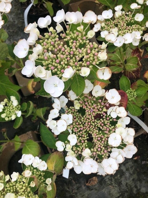 Hortensia met platte schermvormige witte bloemen van juli tot september. De binnenste bloemen zijn klein en gesloten, de buitenste groot en open. Verlangt een vochtige grond, in zon of halfschaduw. Alleen uitgebloeide takken wegsnoeien. Plantafstand: wanneer meerdere planten van deze soort in een groep geplant worden, plant men deze best op 80 cm tot 100 cm van elkaar.