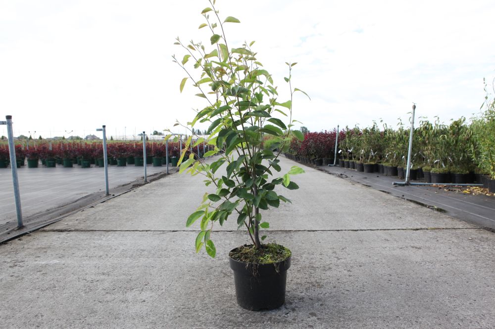 Zeer gekende breedgroeiende struik of kleine boom met breed uitstaande takken en kleine ovale groene blaadjes. Bloeit in april - met kleine witte bloempjes in trossen, juist voor het roodachtig uitlopen van het blad. Draagt in de herfst eetbare bruinrode vruchtjes. Het blad heeft een zeer mooie herfstkleur, juist voor de bladval. Gedijt op zowat alle gronden, zowel droge als natte, in volle zon of in de schaduw. Verdraagt goed regelmatige strenge snoei. Ook als boom verkrijgbaar, zie hiervoor bij de SIERBOMEN.. Plantafstand: wanneer meerdere planten van deze soort in een groep geplant worden, plant men deze best op 125 tot 150 cm van elkaar.