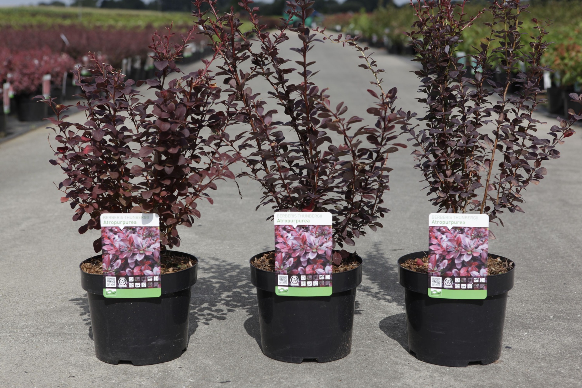 De gewone RODE BERBERIS. Gemakkelijk groeiende gedoornde en bladverliezende struik met losse opgaande groei en bruinrood blad. Verdraagt goed snoei en wordt vooral als haagplant gebruikt: men plant dan 4 planten per meter. Voor een lichte, zonnige standplaats; stelt weinig eisen aan de bodem.