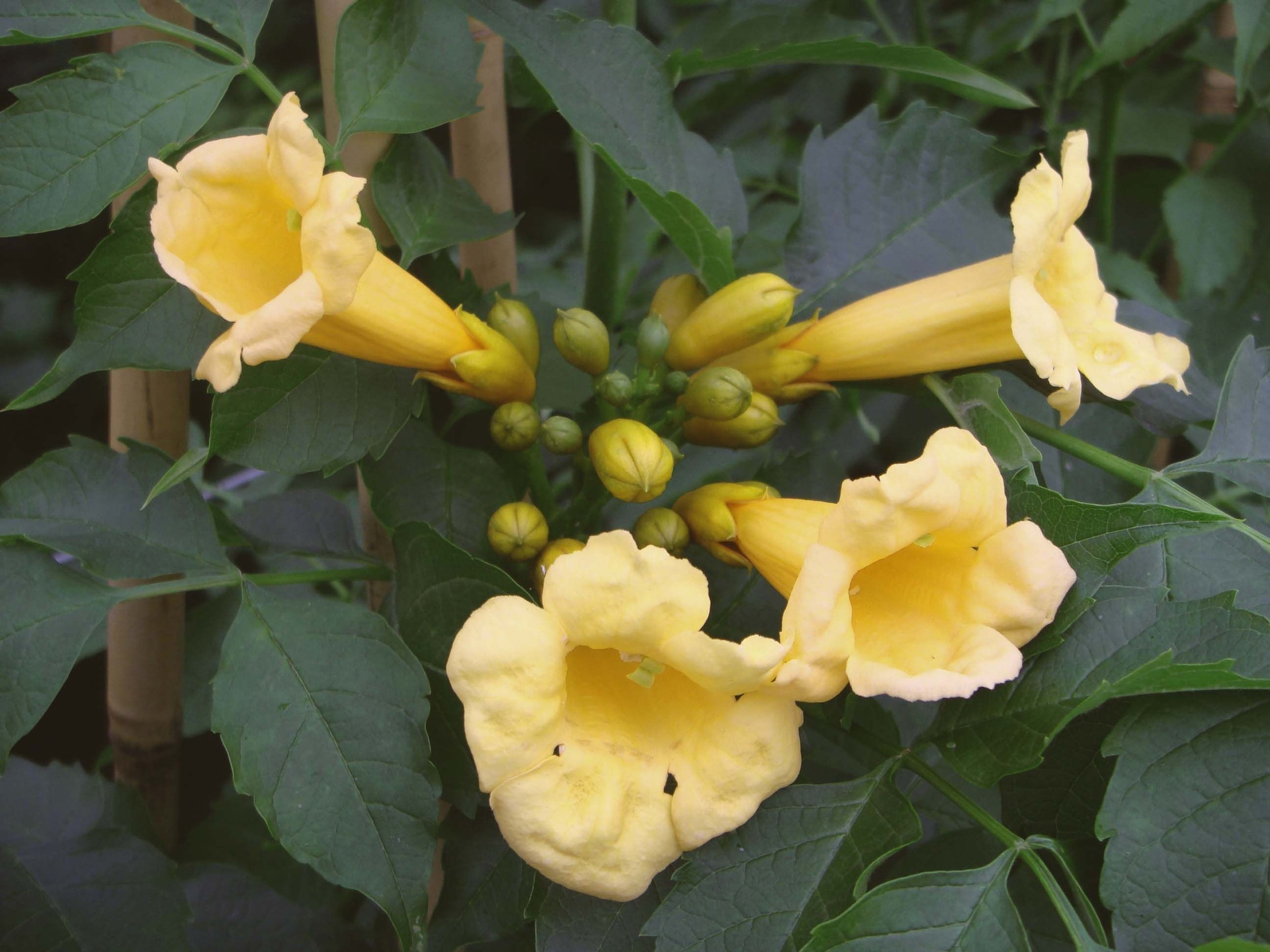 Snelgroeiende bladverliezende klimplant, NIET zelfhechtend, Bloeit in aug.-sept. met grote zuiver gele trompetvormige bloemen in trossen. Verlangt een beschutte zonnige plaats, in een voedzame vochthoudende grond. Regelmatige snoei mag.