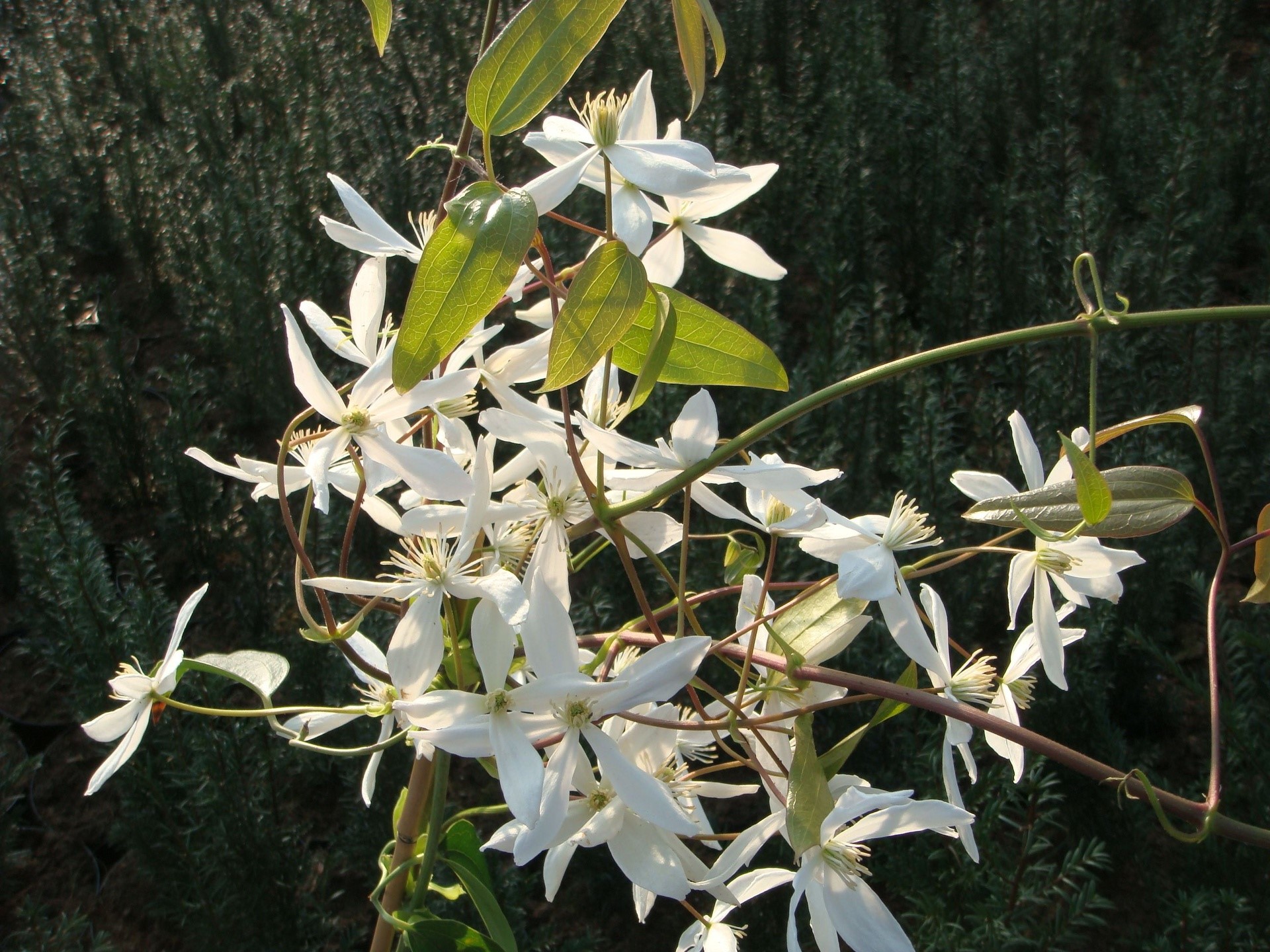 Groenblijvende clematis welke in april-mei bloeit met witte geurende bloemen. Aanplanten op een goed doorlaatbare en voedzame grond en deze soort best op een tegen strenge wind en vorst beschutte plaats. Slingerplant ; klimrek gebruiken!