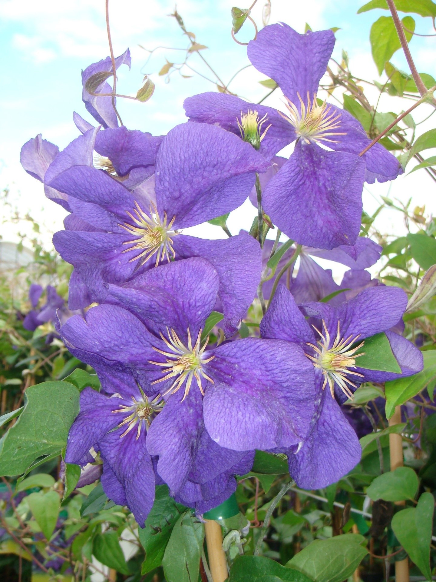 Bladverliezende klimplant , bloeit in juli en augustus met grote donkervioletblauwe bloemen. Best planten op een, voor felle N.O.-wind, beschutte plaats. De voet der plant best afdekken tegen hevige zonnestralen; vb.met een dakpan, e.d.