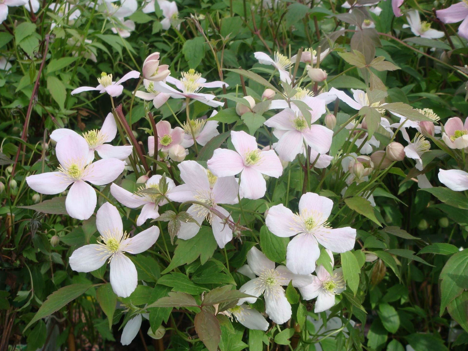 Snelgroeiende bladverliezende klimplant, minder ziektegevoelig dan de andere clematissoorten. Bloeit van mei tot juni met kleine volroze bloempjes. Verkiest een zonnige of lichtbeschaduwde plaats en een goed doorlatende kalkrijke bodem.
