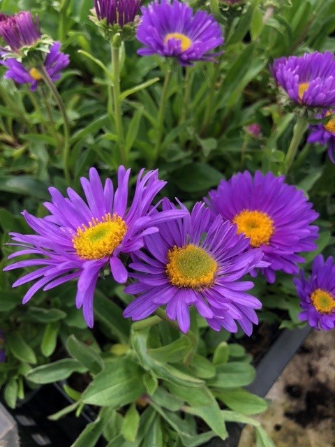 Deze aster is gans met korte haartjes bezet; de bladeren zijn langwerpig en vormen een rozet. De bloemhoofdjes zijn violetblauw met een geel hartje. Gedijt alleen goed op een goed water doorlatende grond, in volle zon of lichte schaduw.