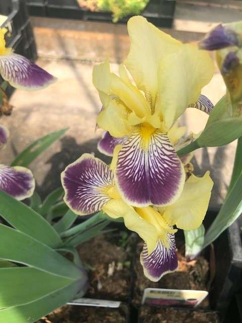 Irissen zijn zeer gekende grotendeels groenblijvende planten en ze groeien bijna allemaal vanuit korte ondergrondse wortelstokken. De bladeren zijn meestal donkergroen en zwaardvormig. De grote lelieachtige lichtgele bloemen met lilablauwe lippen, die in kleine opstaande trossen samen staan, zijn zeer apart, ze bestaan uit 3 opstaande bloemblaadjes die men de vlag noemt, en drie neerhangende, deze noemt men de lip. Ze verkiezen een niet te zanderige, normale vochthoudende bodem en een zonnige standplaats.