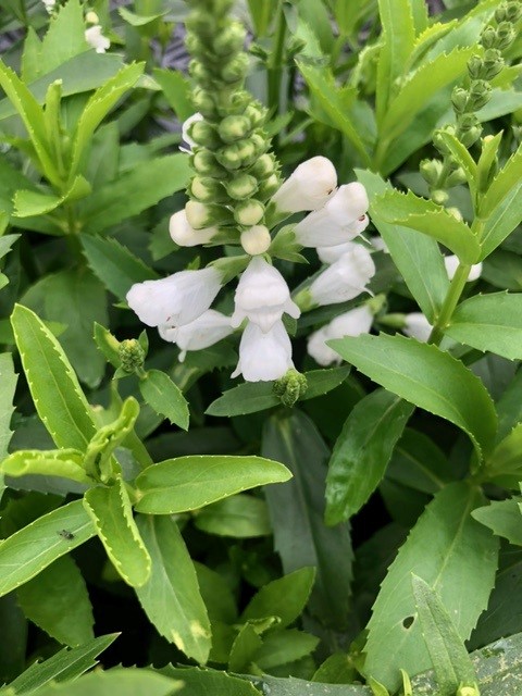 Zeer goede winterharde plant met kruipende, zich sterk uitbreidende wortelstokken en vierkante stengels met tegenoverstaande lancetvormige gezaagde bladeren. Bloeit van juli tot september met grote witte bloemen in opstaande lange pyramidale schijnaren, deze kunnen goed als snijbloem dienen. De afzonderlijke bloempjes aan deze bloemaren kunnen ten opzichte van elkaar 'scharnieren': vandaar de naam 'Scharnierplant'. Groeit in elke normale tuingrond, liefst kalkrijk en indien deze maar niet te droog is, niet te warm of te winderig is: bij sterke wind durven de planten nogal eens af te breken, ze tijdig steunen is dan ook dikwijls noodzakelijk.