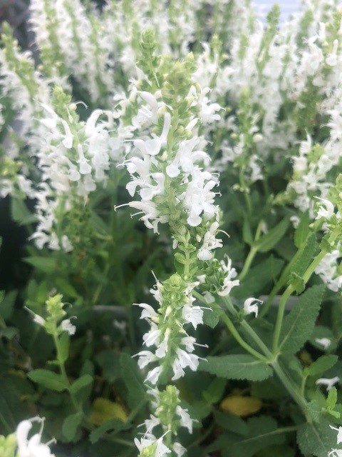 Veel gebruikte borderplant met vierkante stengels en in rozetten staande behaarde fijngekartelde en licht gegolfde bladeren. Hij behoort tot de top 10 der meest toegepaste borderplanten voor gebruik als afboording of in groepen, omwille van de lange periode dat de plant mooi blijft, zijn stevigheid en zijn geringe eisen. Het is een goed alternatief voor de eveneens zeer veel aangeplante LAVENDEL. Compact groeiende struik, rijkbloeiend met vrij grote witte lipbloemen aan opstaande bloemaren. Zeer vroeg en langdurig bloeiend. Salvia's verkiezen een zonnige standplaats en een normale tot licht kalkhoudende tuingrond.