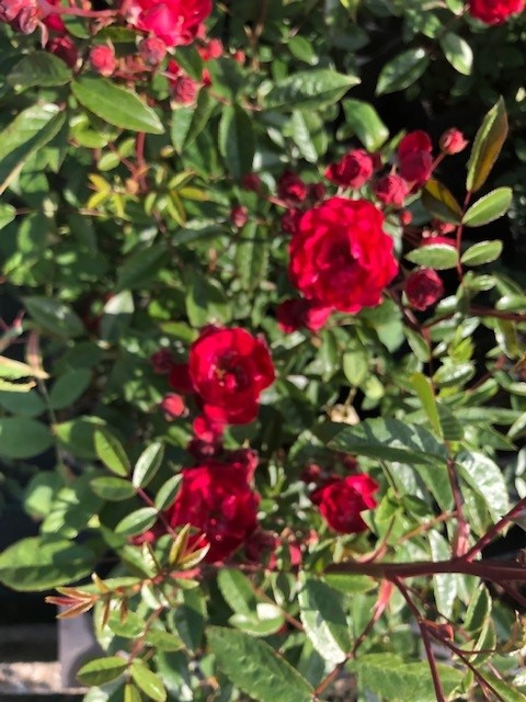 Laagblijvende, kompakt groeiende roos met gevulde middelkleine donkerrode bloemen. Rijkbloeiend; wordt tot 35 cm hoog. Voor border, rotstuin en bloembak, op een zonnige plaats. Elk jaar begin maart bemesten en tot op 8-10 cm terugsnoeien.