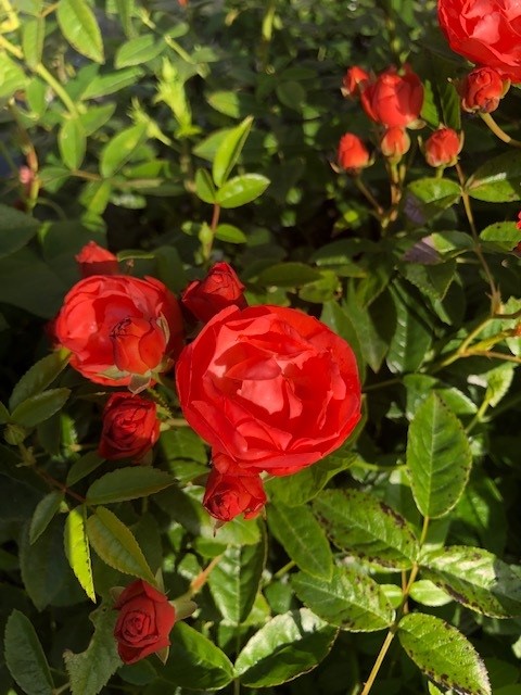 Laagblijvende kompakt groeiende roos met gevulde middelkleine oranje tot steenrode bloemen. Wordt 30-35 cm hoog. Voor border, rotstuin en bloembak, op een zonnige plaats. Elk jaar begin maart goed bemesten en tot op 8-10 cm insnoeien.